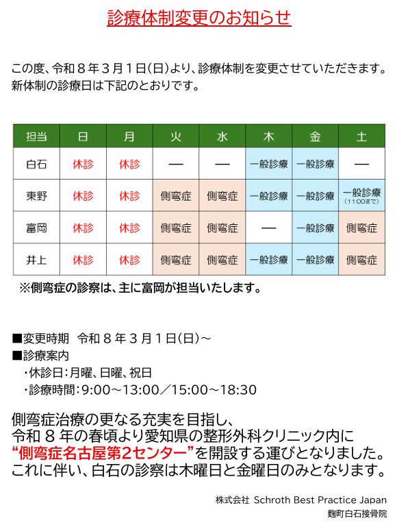 令和8年3月から以下の診療体制に変更になります。